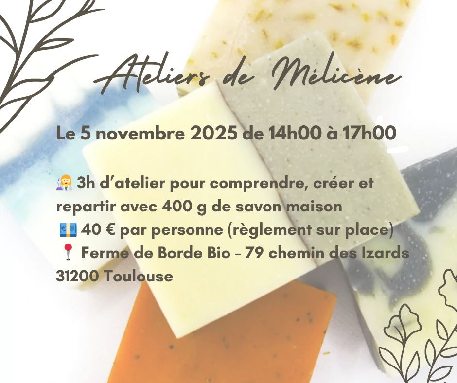 Durant cet atelier de 3h avec Célimène de la savonnerie Artisanale Mélicène, vous apprendrez :